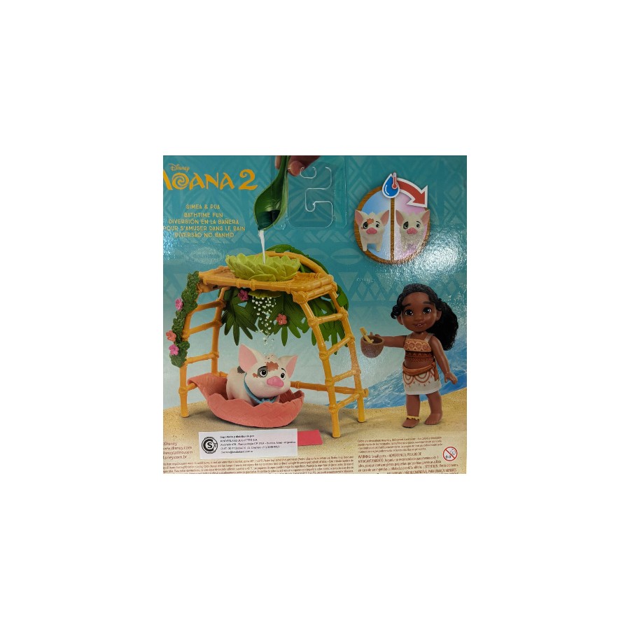 Los niños también pueden ayudar a la muñeca Simea a cepillar los dientes de Pua y así refrescar el día. Los fans de 3 años en adelante pueden explorar nuevas misiones en la isla o recrear momentos de la película con la vivaracha hermanita de Moana, Pua y el resto de su familia y amigos. Inspirado en la película Moana 2 de Disney, secuela de la película original, los niños pueden convertir la hora del baño en una aventura con este set de la muñeca Simea y Pua, su adorable amigo que cambia de color y ¡a quien no le vendría mal bañarse!