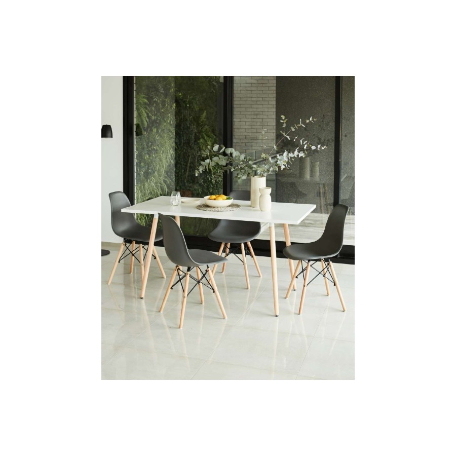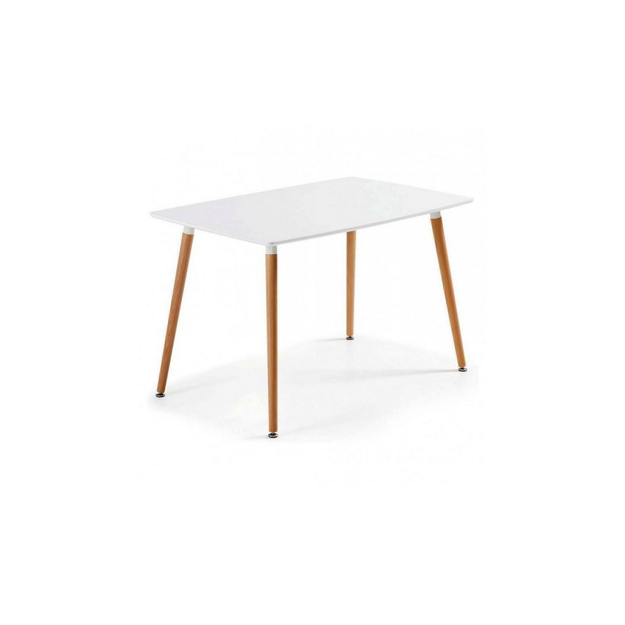Enchapado de melamina color blanco Patas de eucalipto macizo torneado y laqueado semi mate.