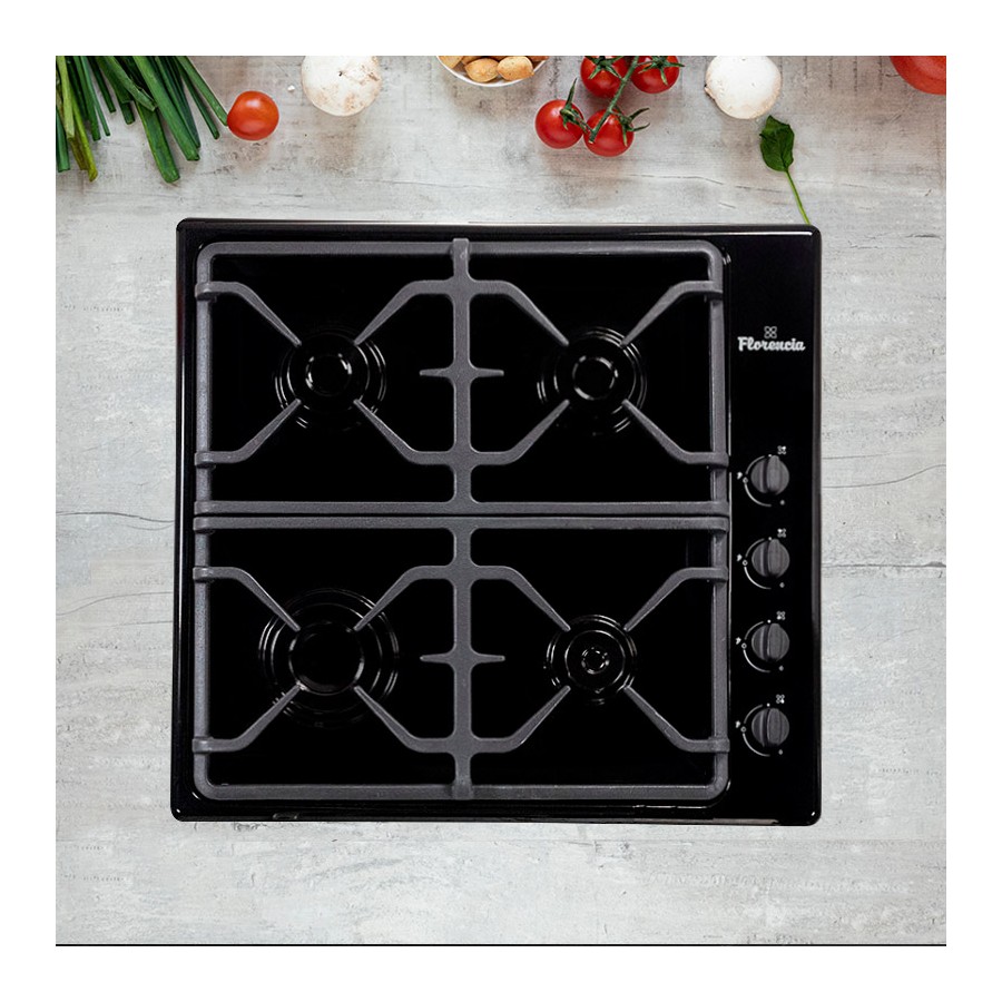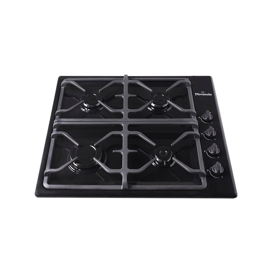 Anafe a gas negro de cuatro hornallas con enlozado de alta resistencia y fácil limpieza con rejillas de fundición.