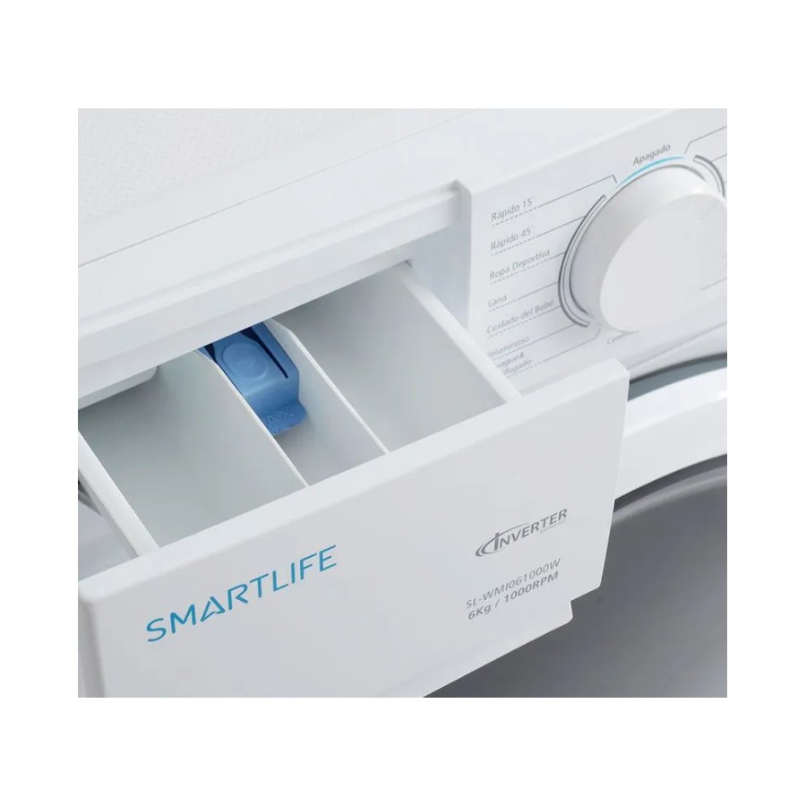 Con 1000 RPM, ofrece lavados profundos y centrifugado rápido, reduciendo el tiempo de secado de la ropa. Smartlife te brinda un equipo compacto y de bajo consumo,pensado para simplificar tu vida.