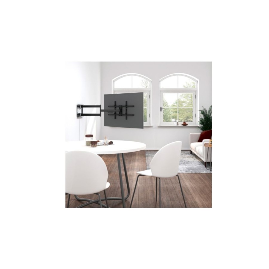 Este soporte de TV móvil es ideal para televisores de 43" a 80" extensible hasta 101.5cm. Fabricado con materiales robustos, garantiza la seguridad y estabilidad de tu televisor. Su diseño delgado y minimalista permite un montaje discreto y elegante en la pared, optimizando el espacio en tu hogar. Fácil de instalar, perfecto para quienes buscan una solución sencilla y efectiva para montar su televisor.