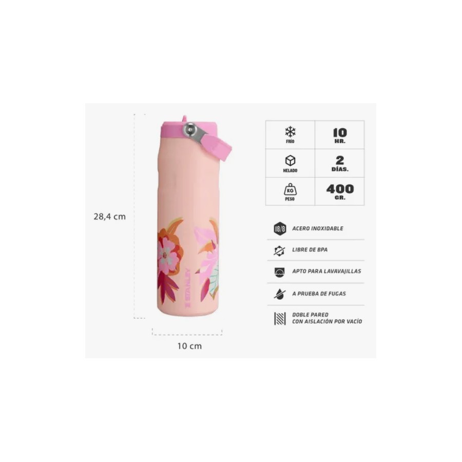 Hidratación de otro nivel. La botella IceFlow Flip Straw 2.0 de 1 Litro cuenta con la tecnología premium AeroLight™, que la hace un 33% más ligera que las botellas estándar de acero inoxidable. Su aislamiento de acero ultraligero mantiene tu agua helada durante horas. El asa plegable la convierte en la compañera perfecta. La tapa Flip Straw 2.0 tiene una abertura más grande para beber y una pajilla integrada, lo que te permite hidratarte más rápido. Ábrela para beber, ciérrala de un clic y guarda la botella en tu bolso o portavasos del coche. Incluso puedes quitar el nuevo pico para una limpieza más profunda.