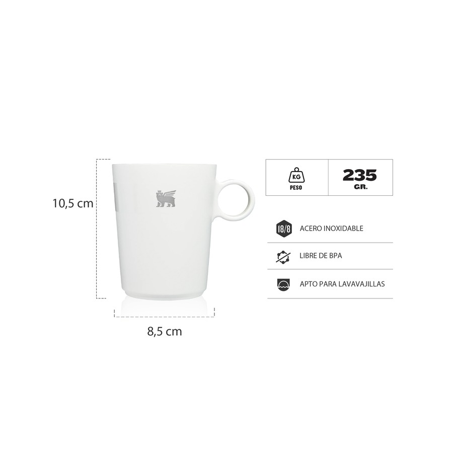 Cuando llegue el momento de reducir la velocidad y relajarse con un café con leche, café o té, podés contar con esta versátil taza. Se ha considerado cada detalle para que puedas aprovechar al máximo tu tiempo libre, ya sea que estés en el living, en el patio o en la oficina. Hay una base de silicona antideslizante en la taza Stanley Daybreak para un aterrizaje silencioso y quieto. El aislamiento al vacío de doble pared mantiene su bebida agradable y caliente (o fría) desde el primer sorbo hasta el último. Y el asa circular hace que la taza sea realmente cómoda de sostener.