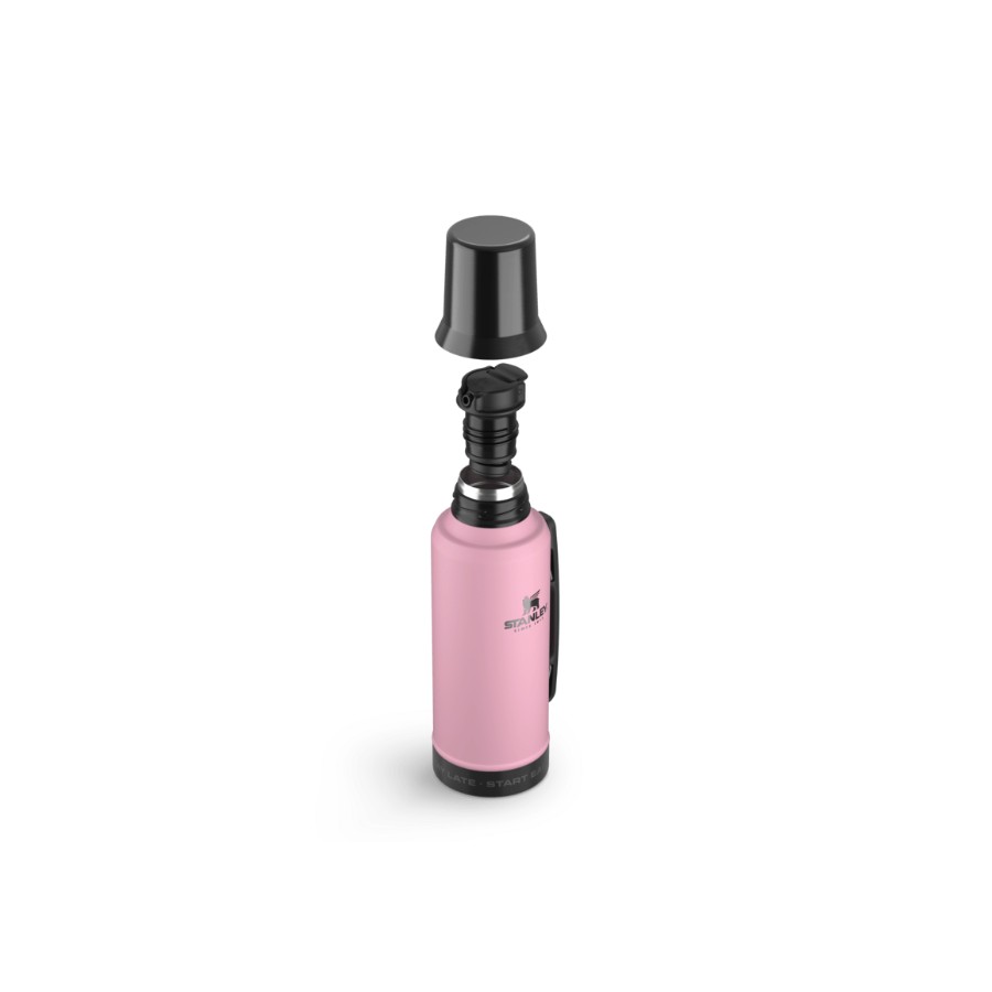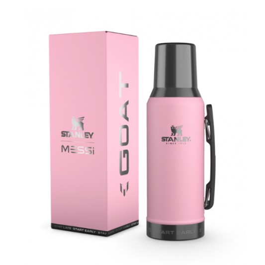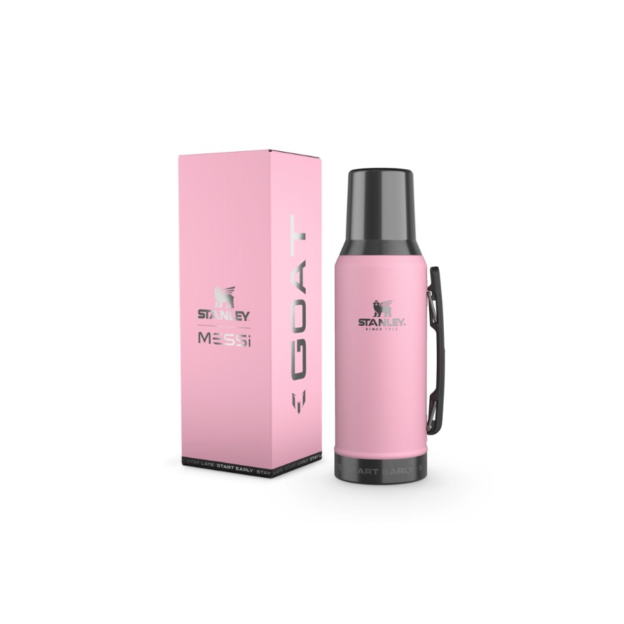 Empieza temprano y quédate hasta tarde con la colección Messi x Stanley 1913 En negros metalizados y Messi GOAT Pink. El sistema Flow Mate de alta precisión de 1,2 litros cuenta con un tapón único. No es necesario girar ya que el botón disparador le proporciona un vertido continuo. La tapa aislada también sirve como mate para que puedas alimenta tu dedicación dentro y fuera del campo.
