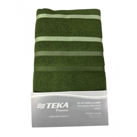 TEKA JUEGO DE TOALLA Y TOALLON LUMMER 520 GR ALGODON PEINADO VERDE