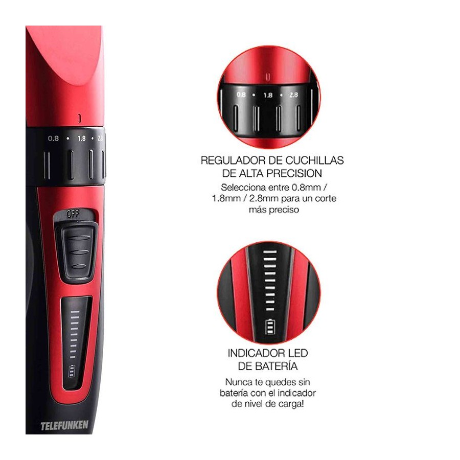 La Cortadora de Pelo y Barba Inalámbrica TELEFUNKEN TFHC350 es tu aliado para lograr un look impecable y personalizado. Con su regulador de cuchillas, tecnología antibacterial y batería de alta duración, esta cortadora te brinda el control total sobre tu estilo de corte y barba