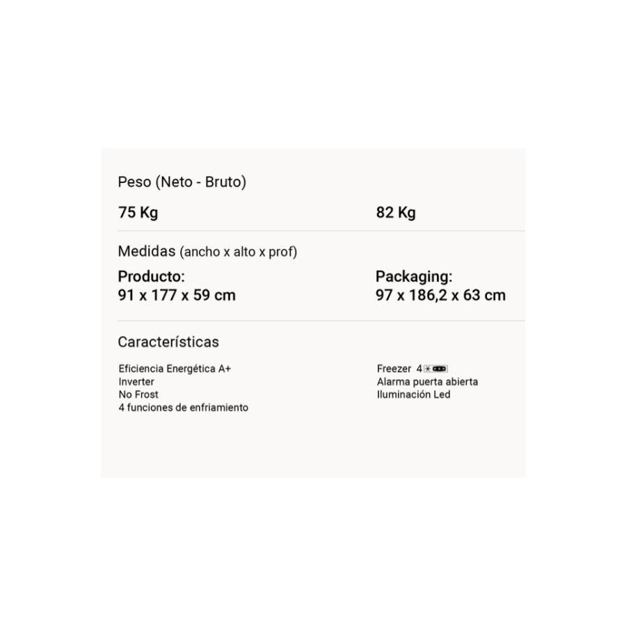 La tecnología Inverter ajusta automáticamente la velocidad del compresor según la demanda de frío. Utiliza menos energía, minimiza el ruido y reduce el desgaste, generando un rendimiento de mayor durabilidad. Además, con su sistema No Frost, te olvidás del fastidio de descongelar manualmente, lo que asegura un rendimiento óptimo y facilita su mantenimiento.