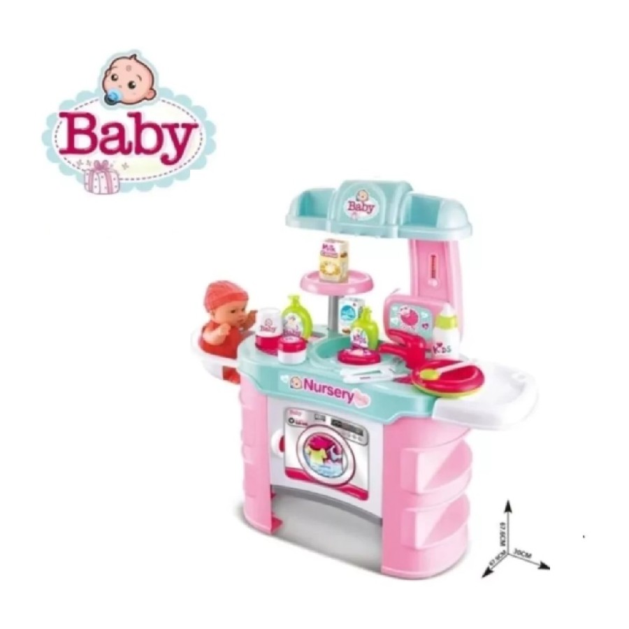 incluye lavadora, utensilios, champú para bebés, gel de ducha para bebés, leche, botella de leche, termómetro, etc.